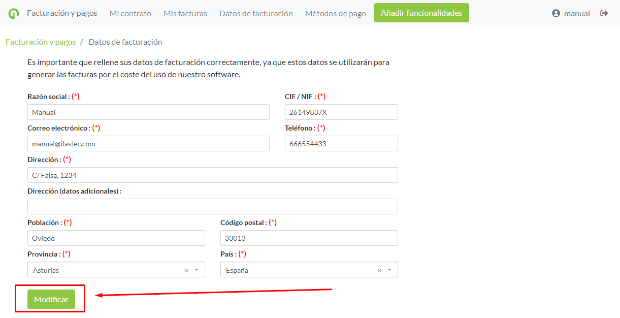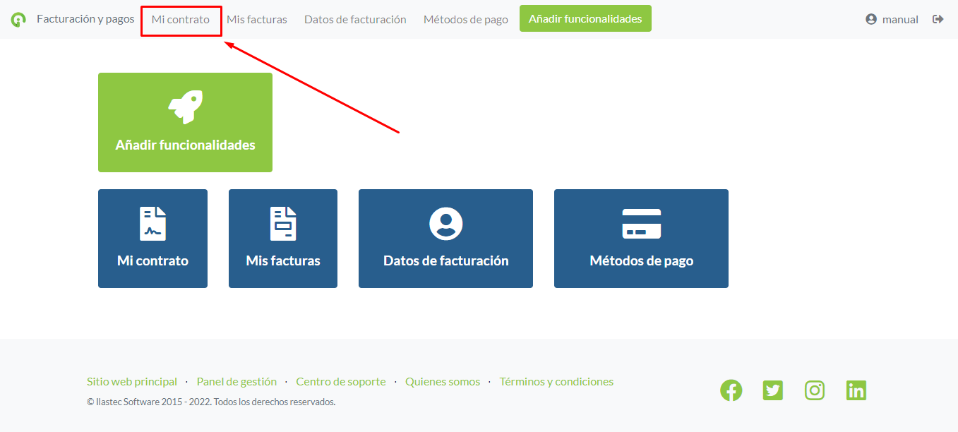 - Cambiar los períodos de pago del contrato y sus funcionalidades.