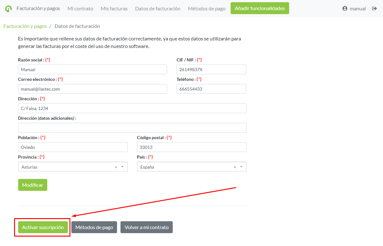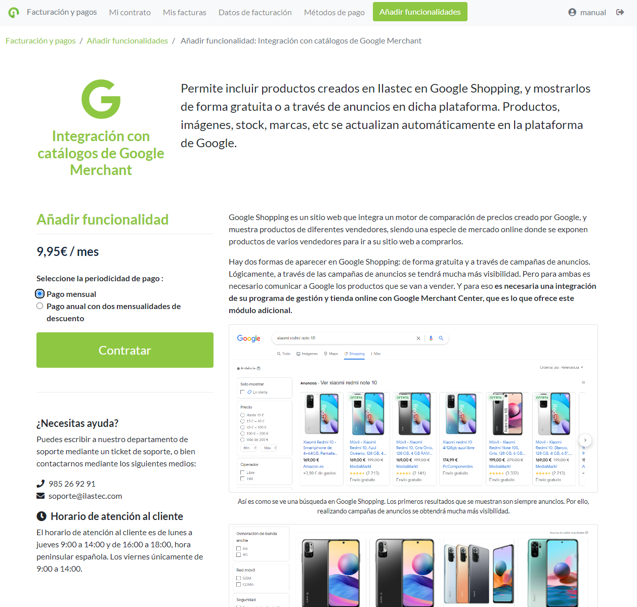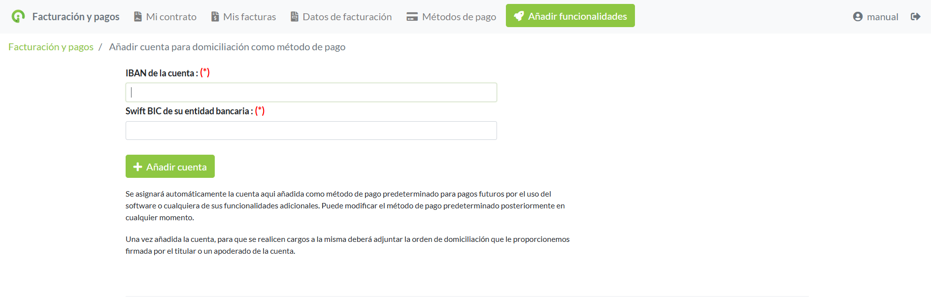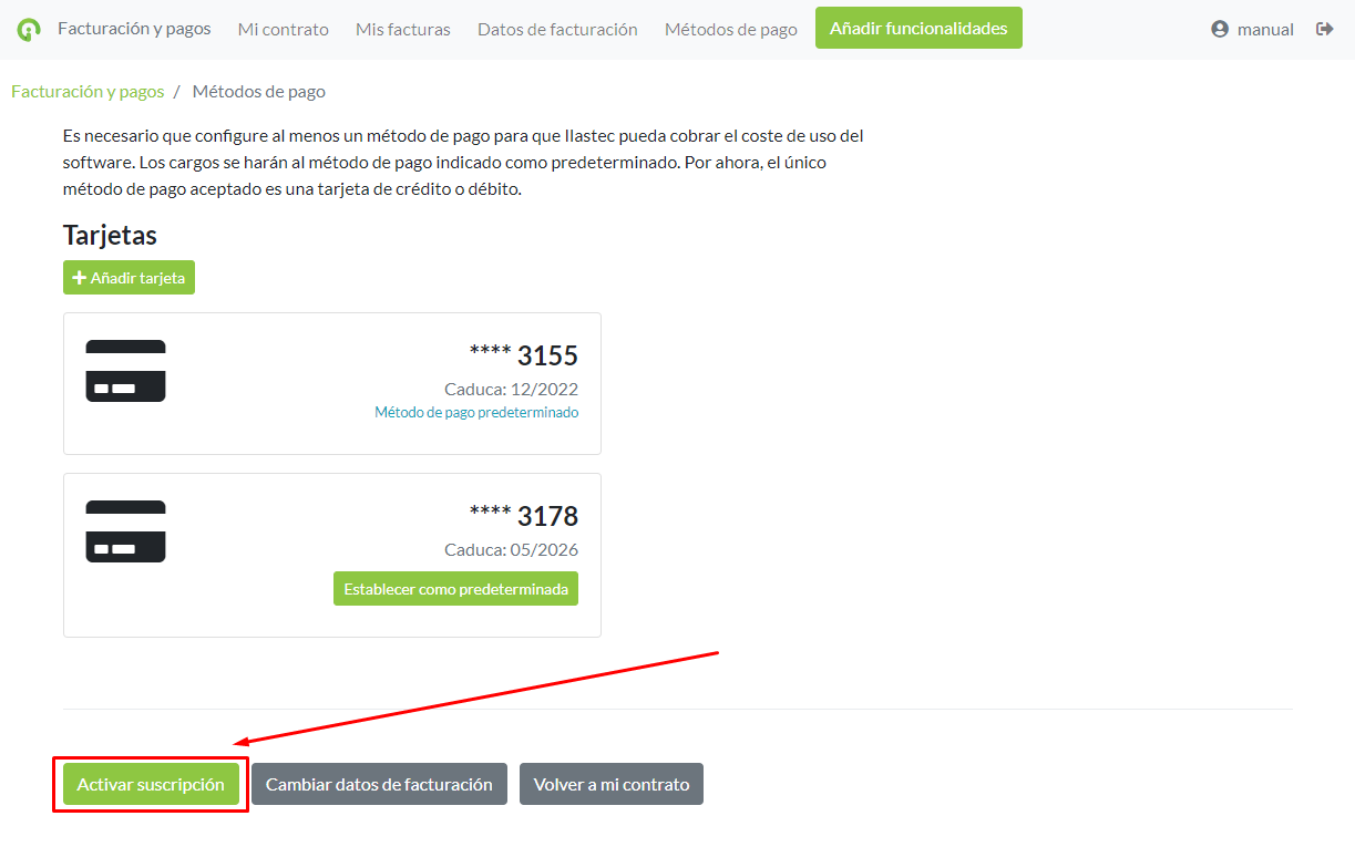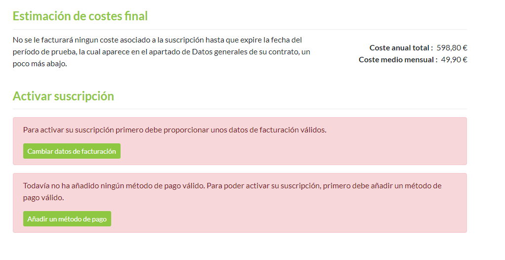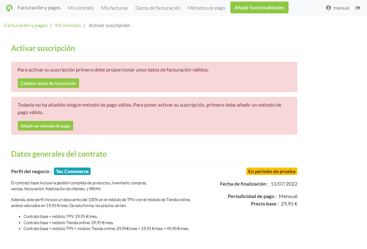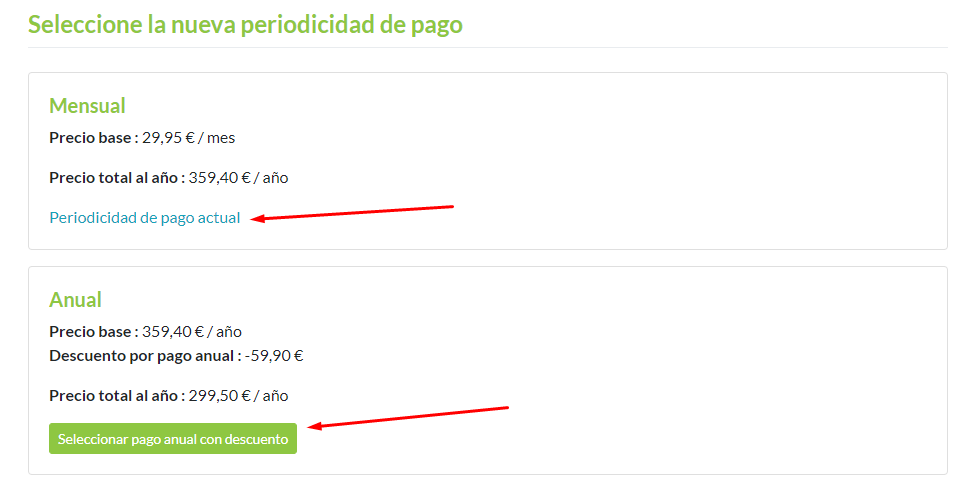 Este cambio no será efectivo de forma inmediata, sino que se tendrá en cuenta para la próxima renovación de la suscripción a la funcionalidad al llegar a la fecha de finalización actual. Al renovarse la suscripción, la periodicidad facturación para esa funcionalidad pasará a la nueva periodicidad indicada.