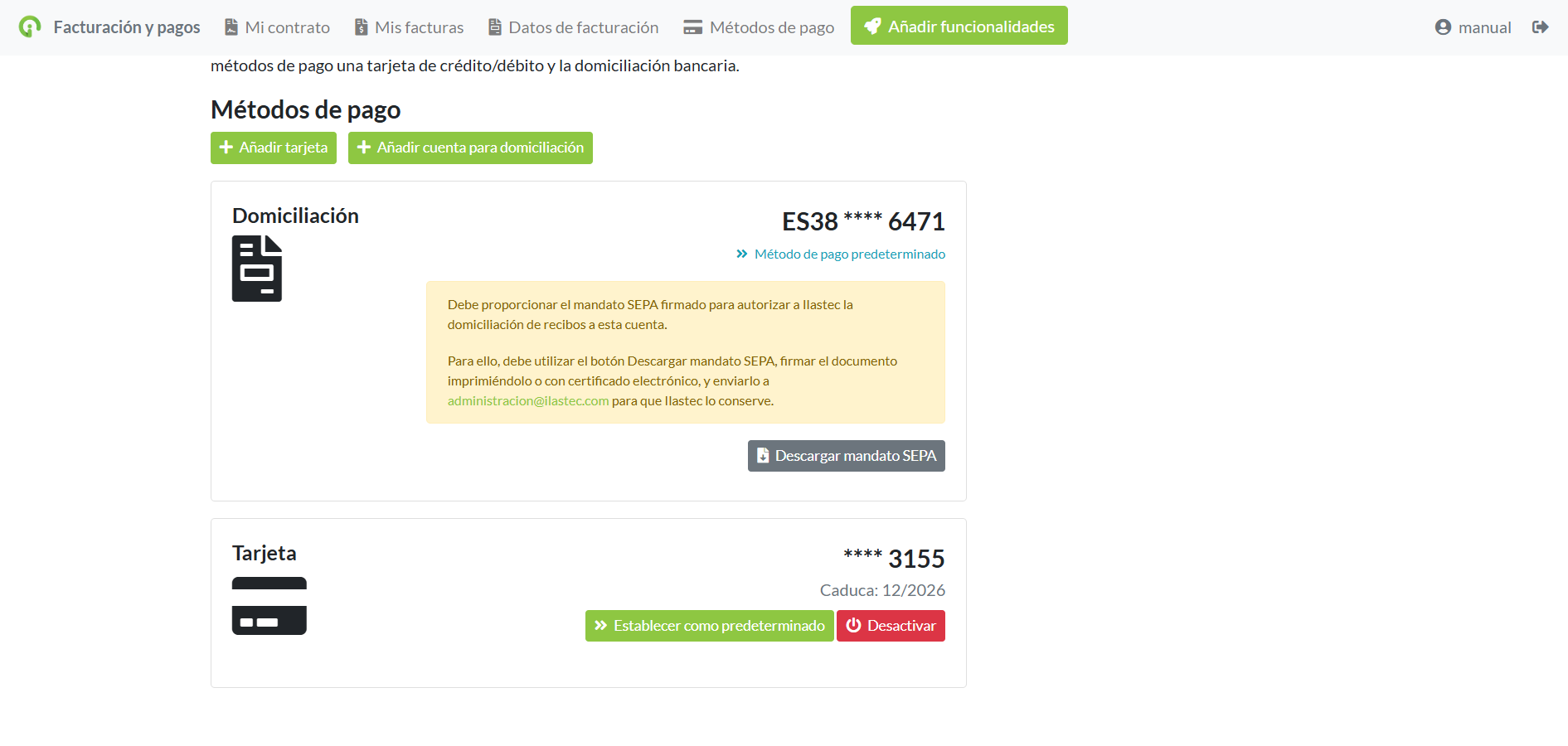 También se implementa el pago por tarjeta, de forma que Ilastec cargará la cuota del programa a una tarjeta de crédito o débito del cliente. De esta forma se facilitan los pagos al cliente, ya que muchos tenían problemas con los giros bancarios, dependiendo del banco con el que trabajaban.