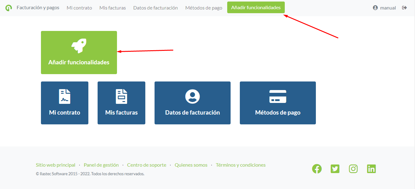 - El propio usuario podrá activar y desactivar módulos y funcionalidades sin necesidad de comunicarlo a nuestro soporte técnico.