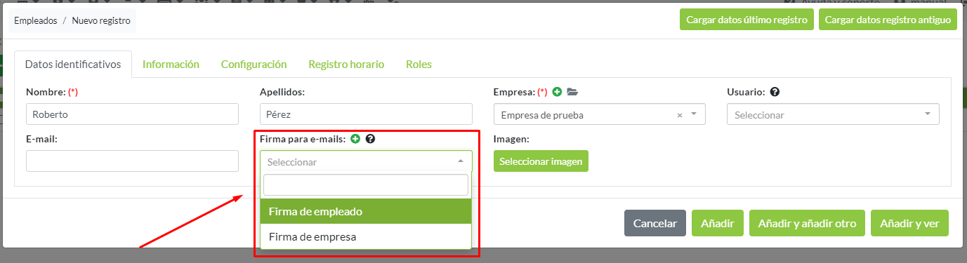 De esta manera, al enviar un correo a un proveedor o a un cliente, se puede incluir la firma del empleado que lo envía, o la firma de correo que se ha registrado para la empresa.