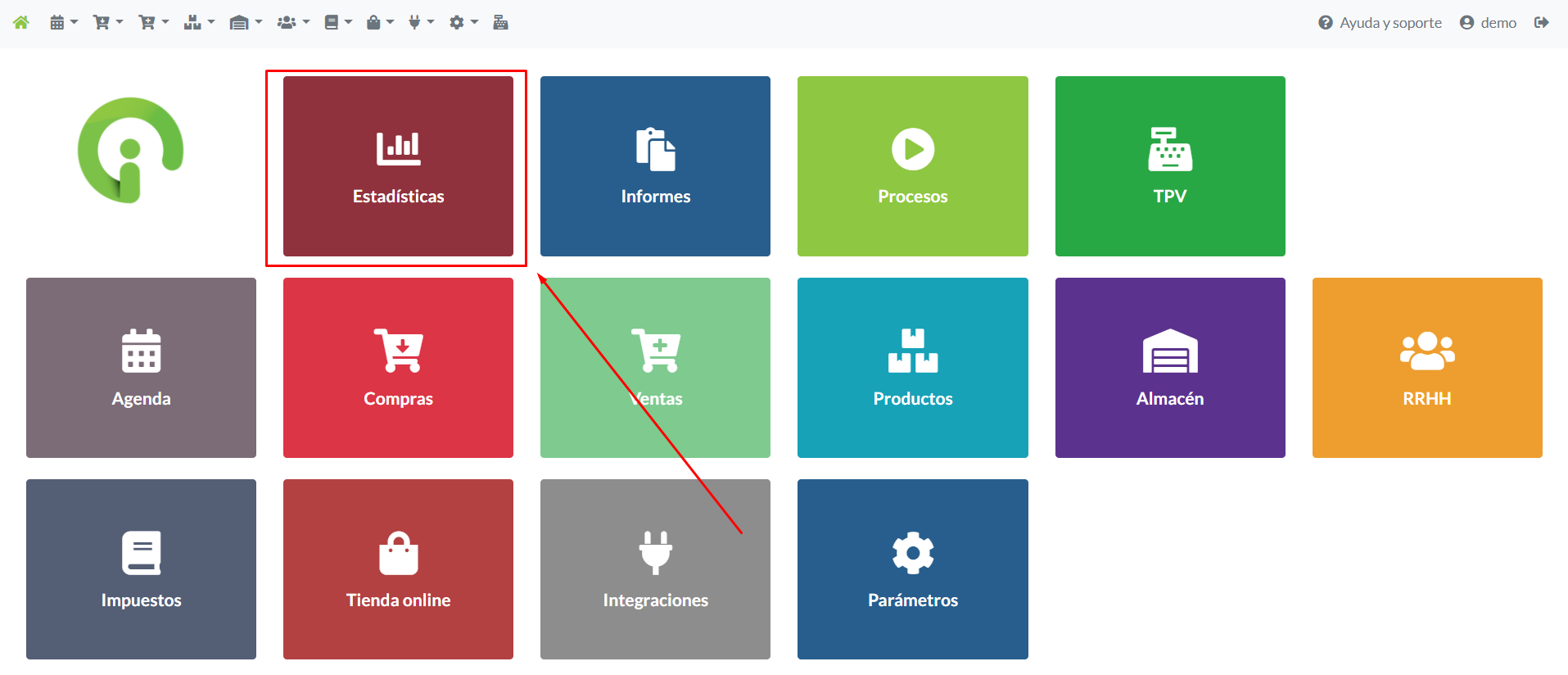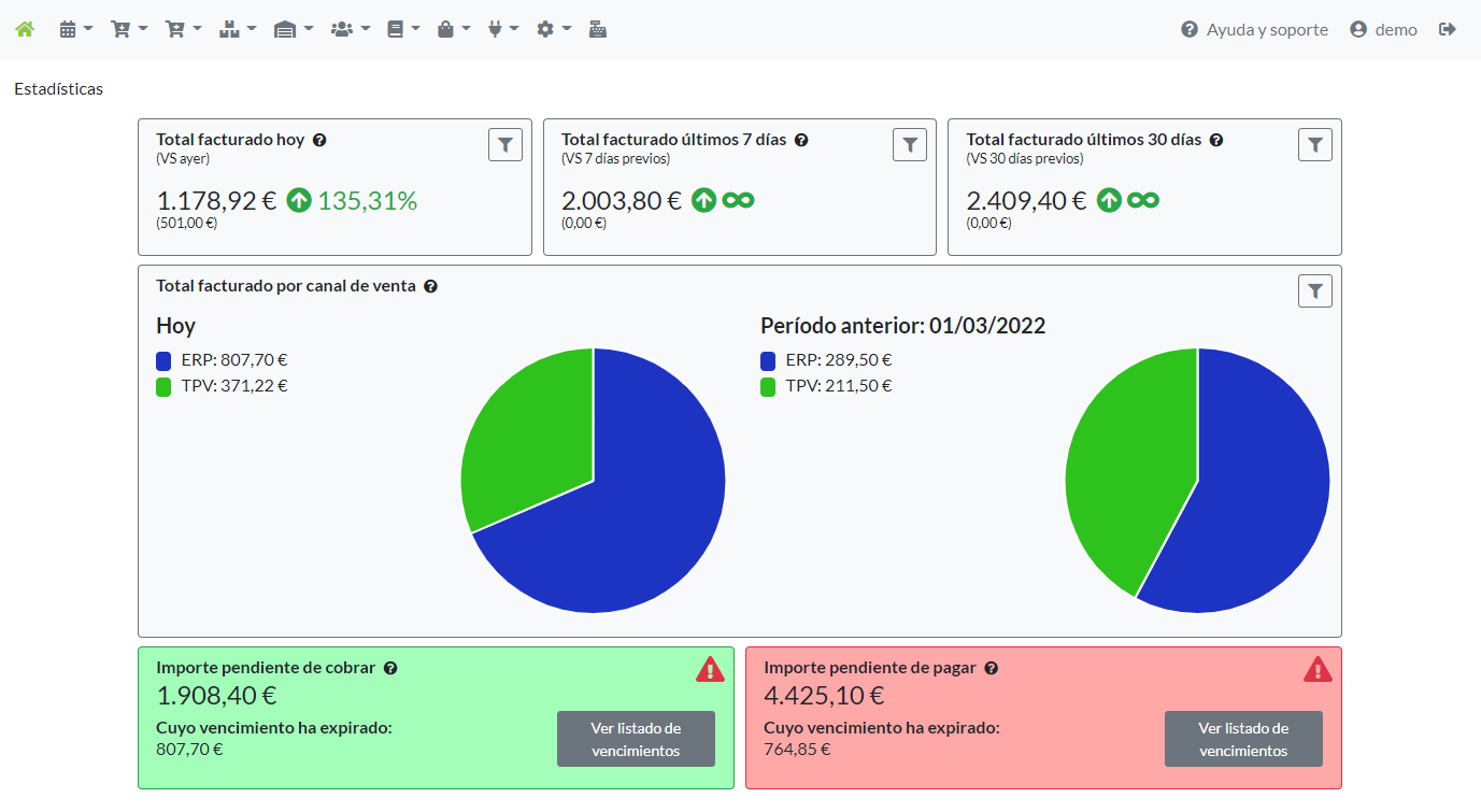 Para tener una visión rápida del estado del negocio, el programa cuenta con un módulo específico para consultar de forma visual las estadísticas más importantes.