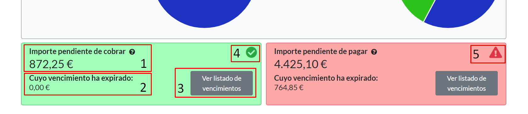 - Acceso directo a la lista de vencimientos, ya sea de pagos o cobros.