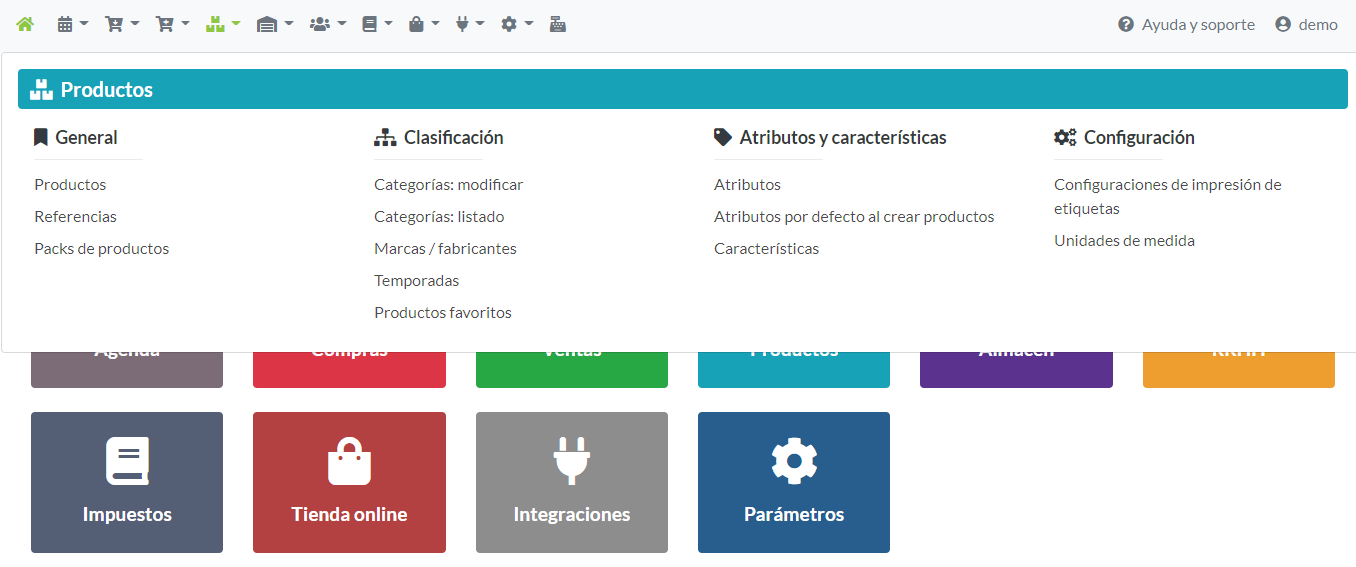 Lo siguiente que se recomienda hacer es preparar la clasificación y las características de los productos que más tarde se darán de alta en el sistema.