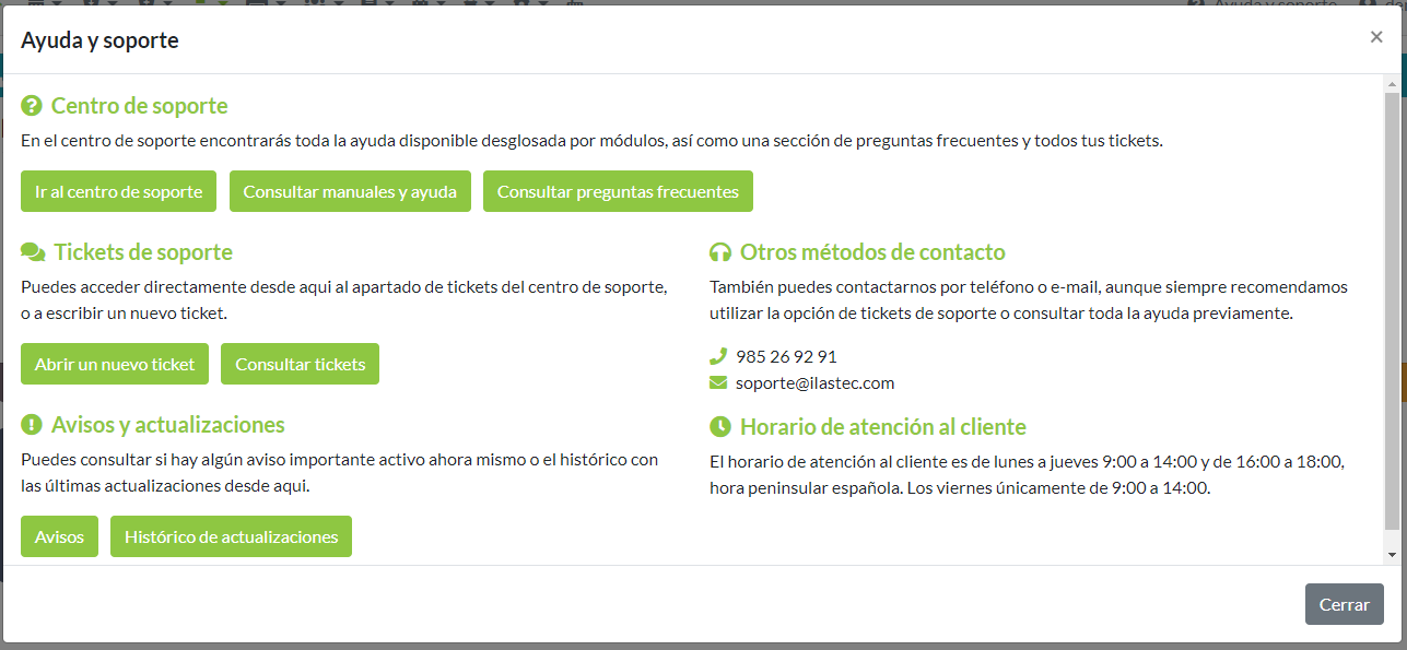 Se puede ver la ayuda completa de esta sección desde el apartado de ayuda del módulo de Parámetros .