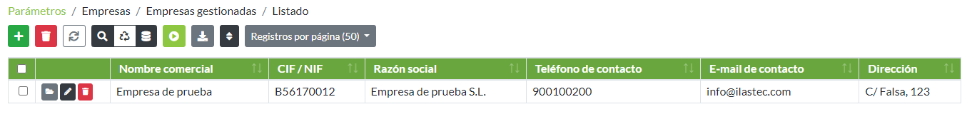 - Botón nuevo registro: Se identifica con el símbolo "+" y sirve para crear un nuevo registro en esa pantalla.