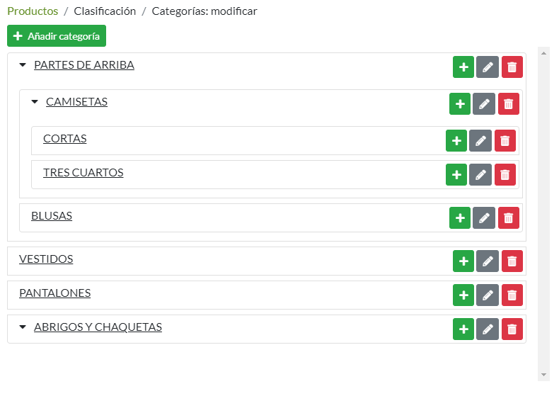 Otra cosa que recomendamos realizar (si no se va a importar un fichero con productos) es dejar creado el árbol de estructura de las categorías.