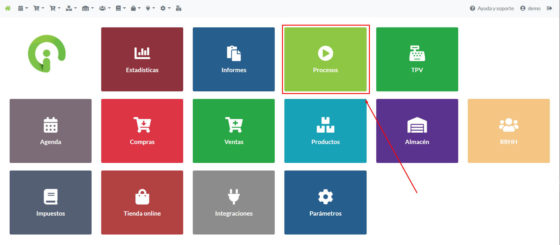 Los procesos sirven para ejecutar acciones especiales en el programa sobre determinados registros o de forma general. Se puede acceder a algunos de los procesos desde la pantalla principal, en el apartado de Procesos.