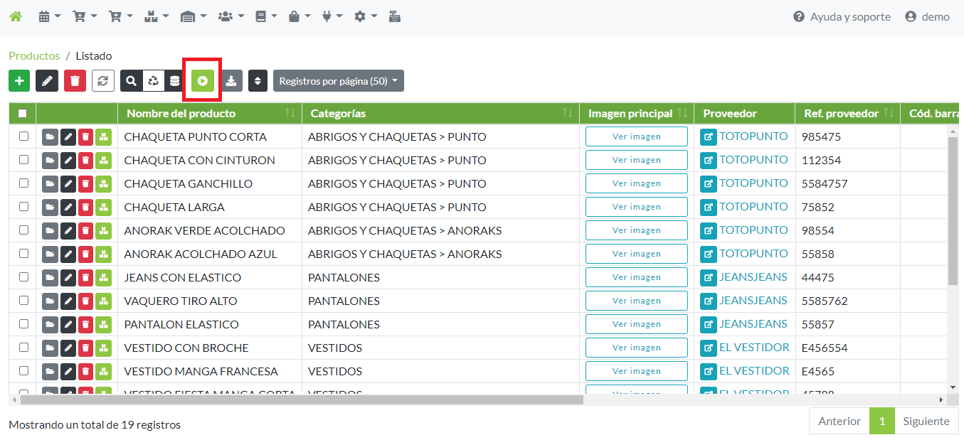 Haciendo esto, se podría disponer de forma rápida de todo el stock que se tenía en un programa anterior, con los datos de los productos, marcas, proveedores, imágenes... etc.