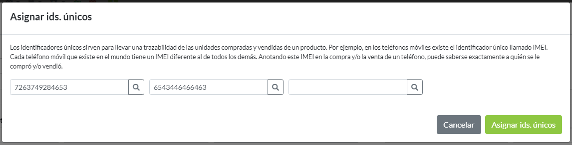 Por ejemplo, si vendemos smartphones, que sea obligatorio en cada venta indicar el IMEI de cada unidad.