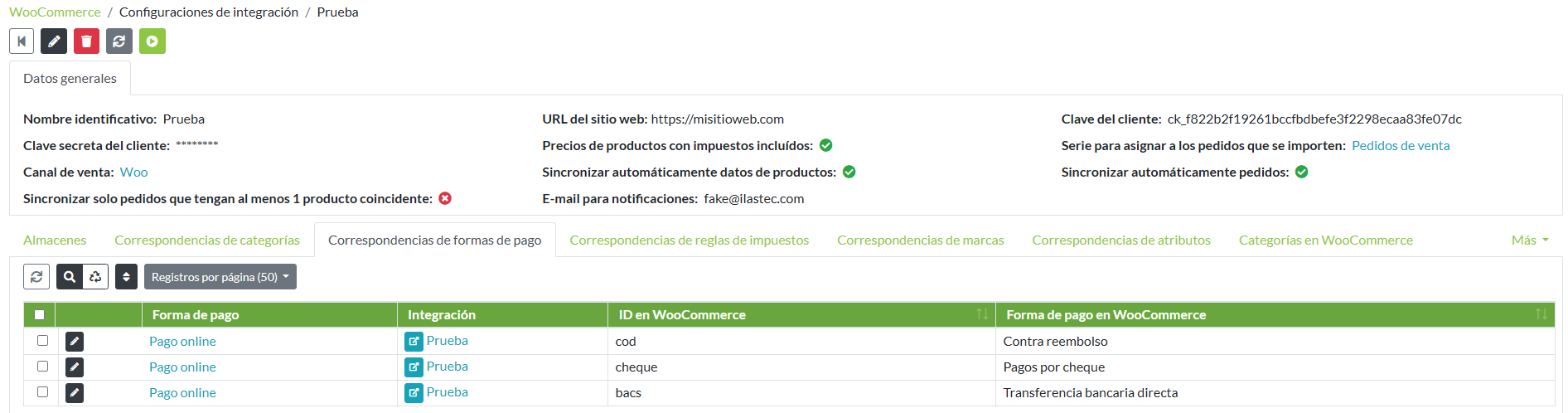 Se pueden crear varias configuraciones de integración, aunque para crear más de una, además del módulo de WooCommerce, es necesario contratar integraciones con WooCommerce adicionales.
