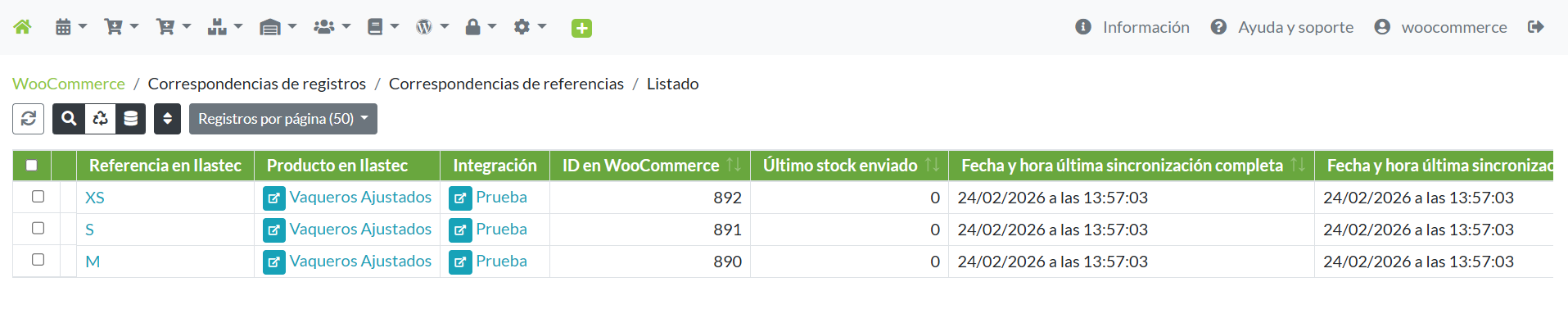 En cuanto a las referencias, Ilastec sincroniza los siguientes datos con WooCommerce: