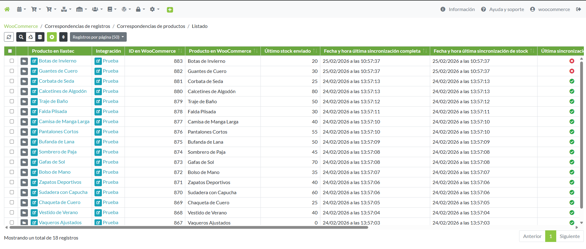 Una vez realizada la importación inicial de WooCommerce a Ilastec, se recomienda que solo se den de alta y modifiquen productos, marcas, atributos y sus valores en el software de Ilastec. En caso contrario, la sincronización puede terminar fallando.