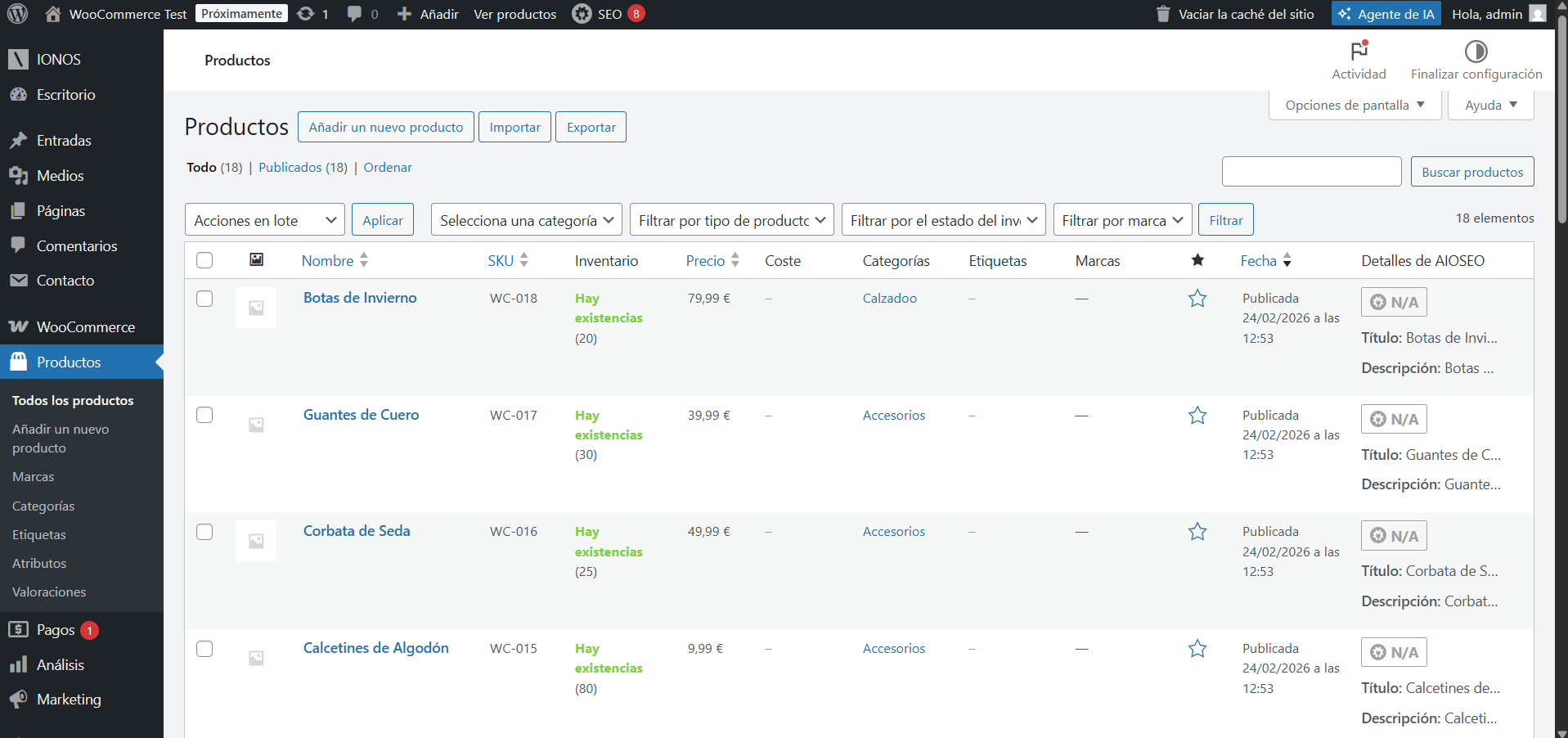 Una vez se ha configurado la integración, ya se puede comenzar a trabajar con WooCommerce.